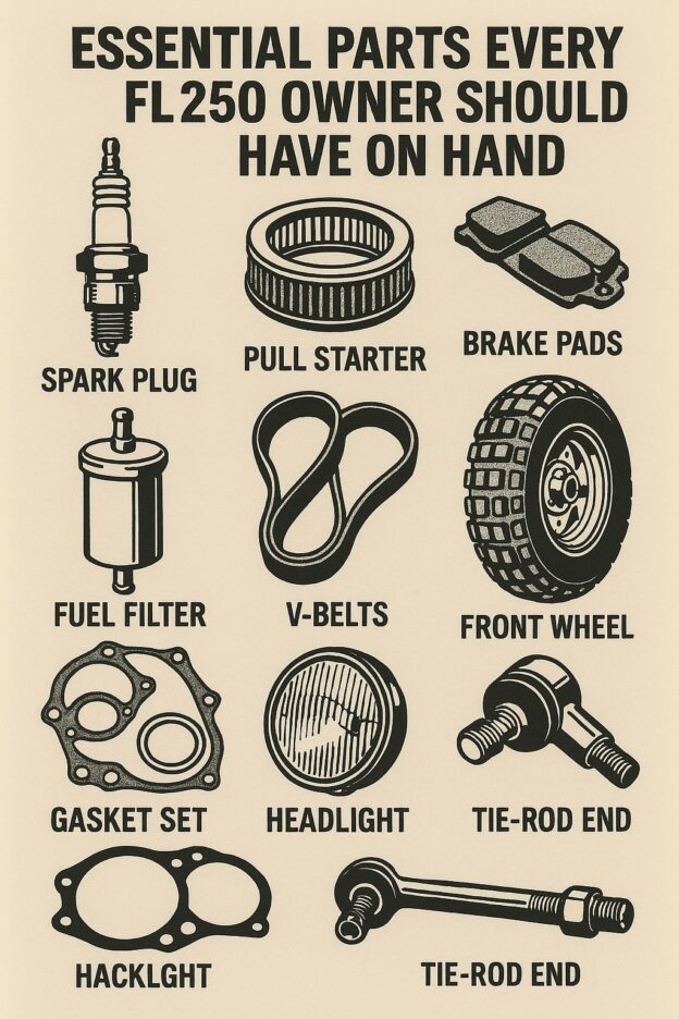 At FL250Parts.com, we specialize in high-quality replacement parts to keep your machine running smoothly. Here’s a list of must-have spare parts every FL250 owner should stock: